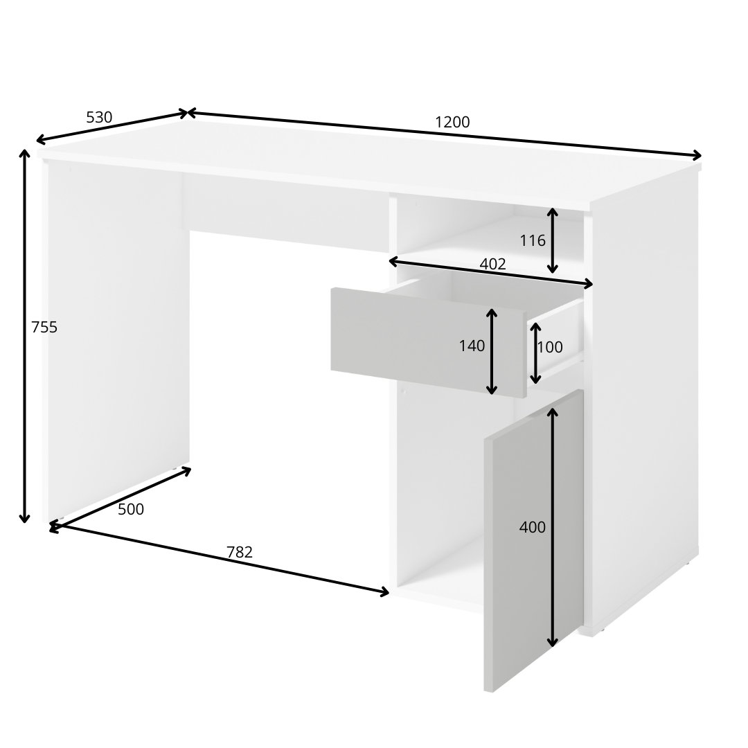 Genişlik: Genişlik: 120 cm – Derinlik: 53 cm – Yükseklik: 75