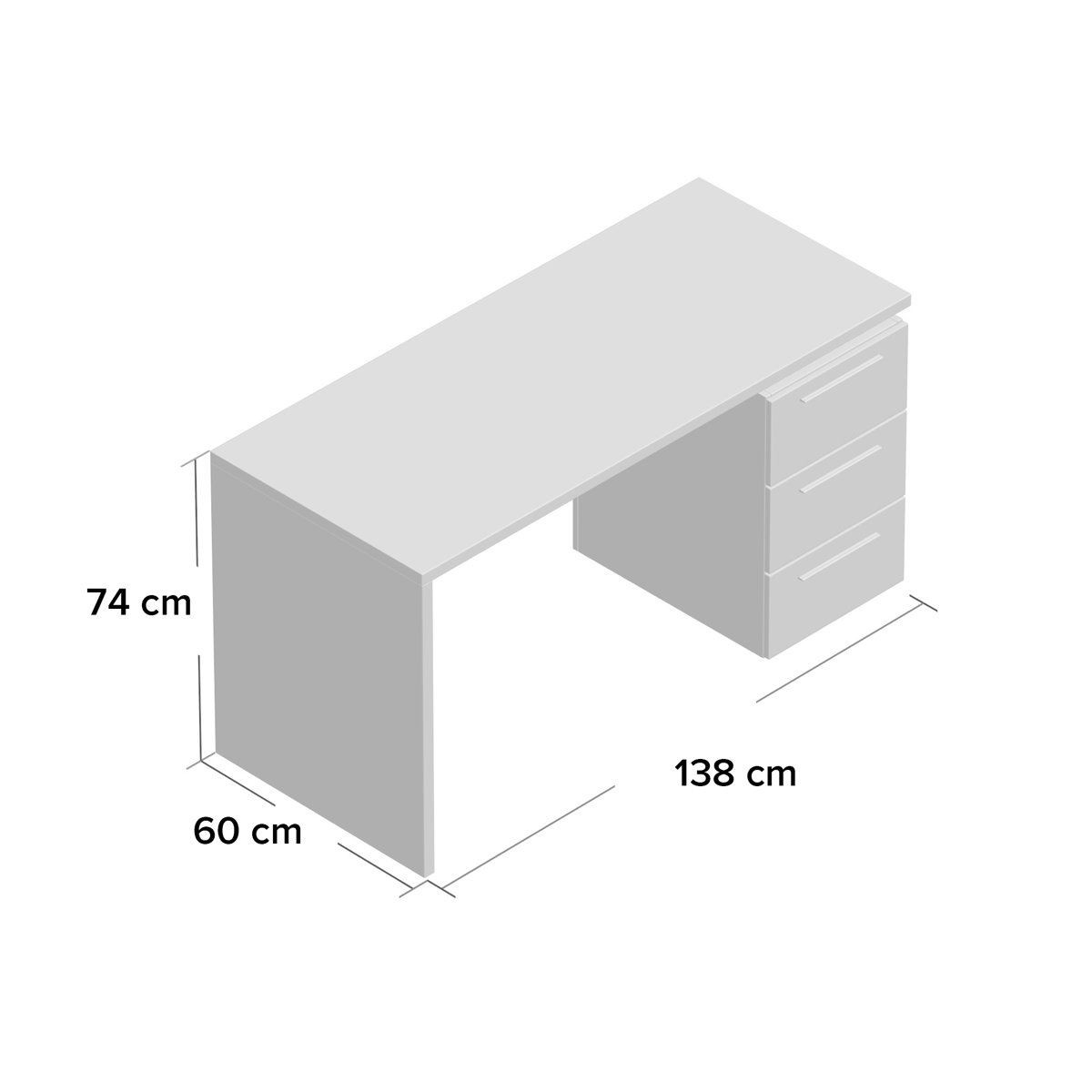 Genişlik: Genişlik: 138 cm – Derinlik: 60 cm – Yükseklik: 75