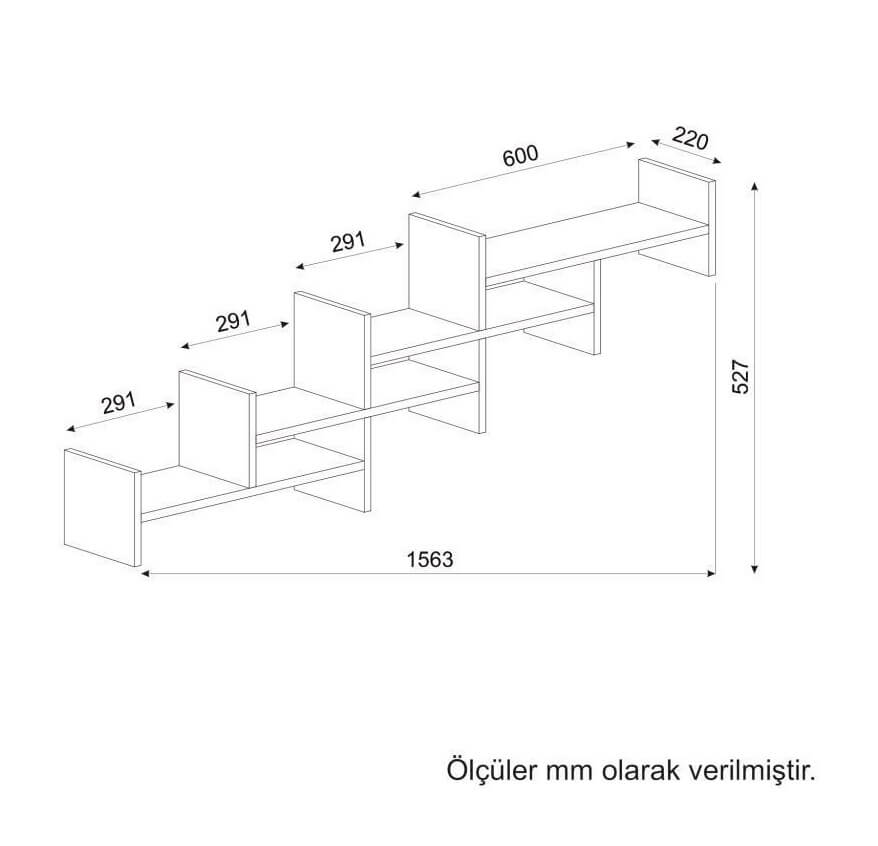 Genişlik: 156 cm – Derinlik: 20 cm – Yükseklik: 53 cm