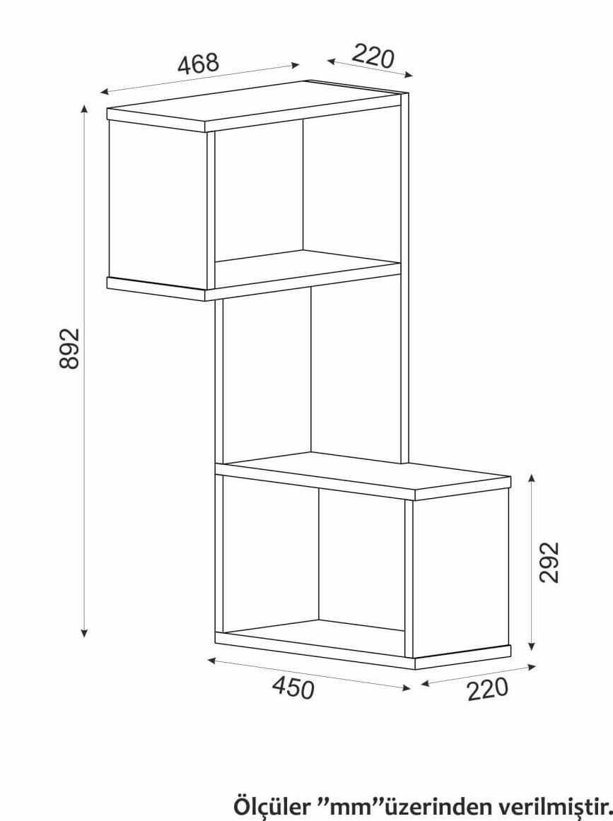 Genişlik: 46 cm – Derinlik: 22 cm – Yükseklik: 90 cm