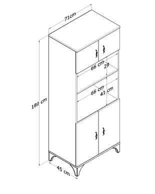 Genişlik: 71 cm – Derinlik: 45 cm – Yükseklik: 180 cm