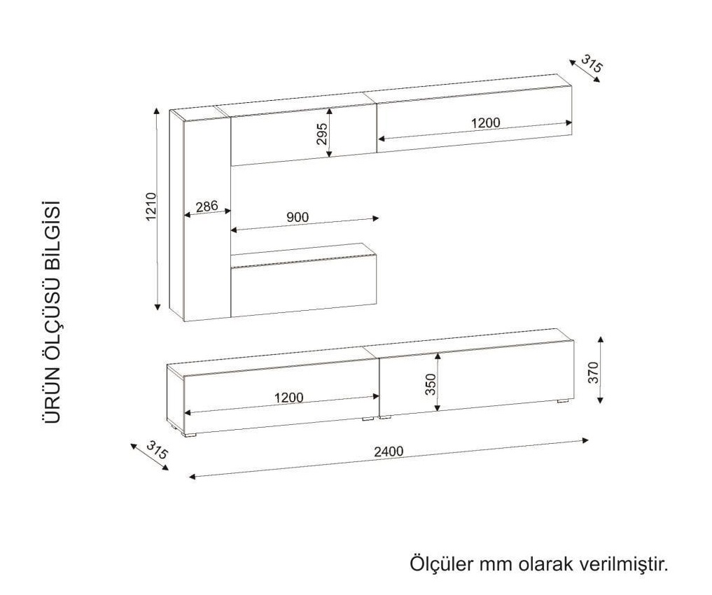 Alt Modül Ölçüleri : Genişlik: 240 cm Yükseklik: 37 cm Derinlik: 31,5 cm