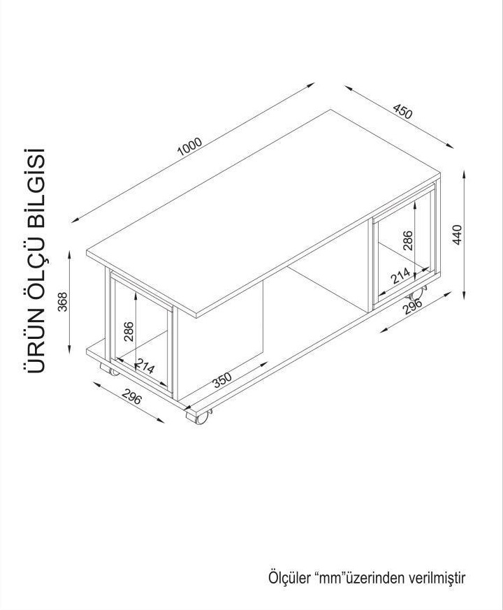 Genişlik: 100 cm – Derinlik: 45 cm – Yükseklik:44 cm