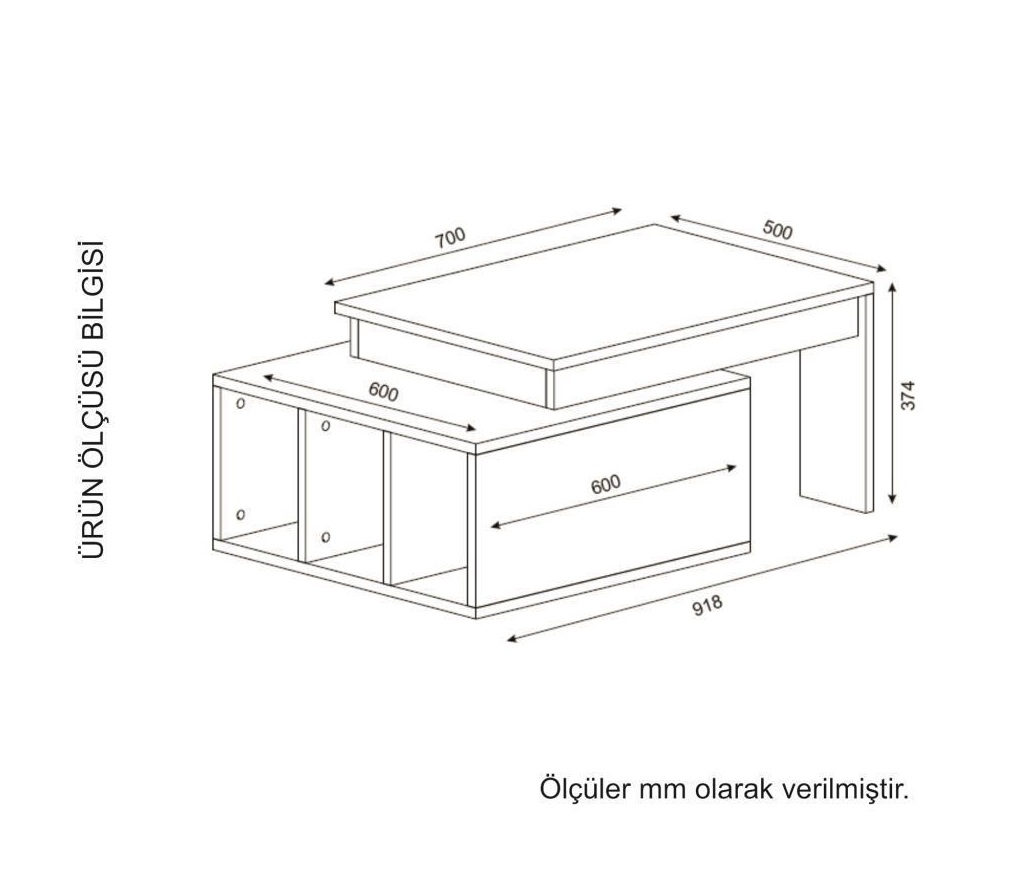 Genişlik: 90 cm – Derinlik: 60 cm – Yükseklik: 38 cm