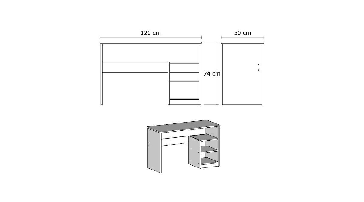Genişlik: 120 cm – Derinlik: 50 cm – Yükseklik: 74 cm