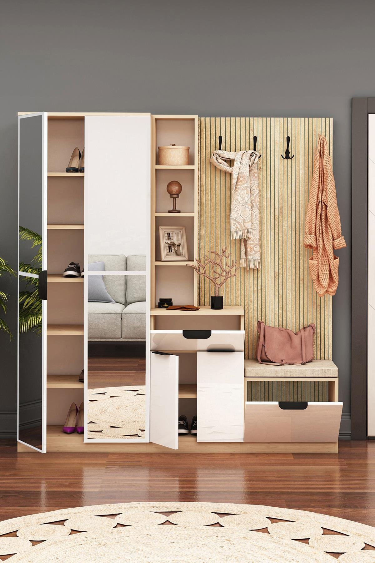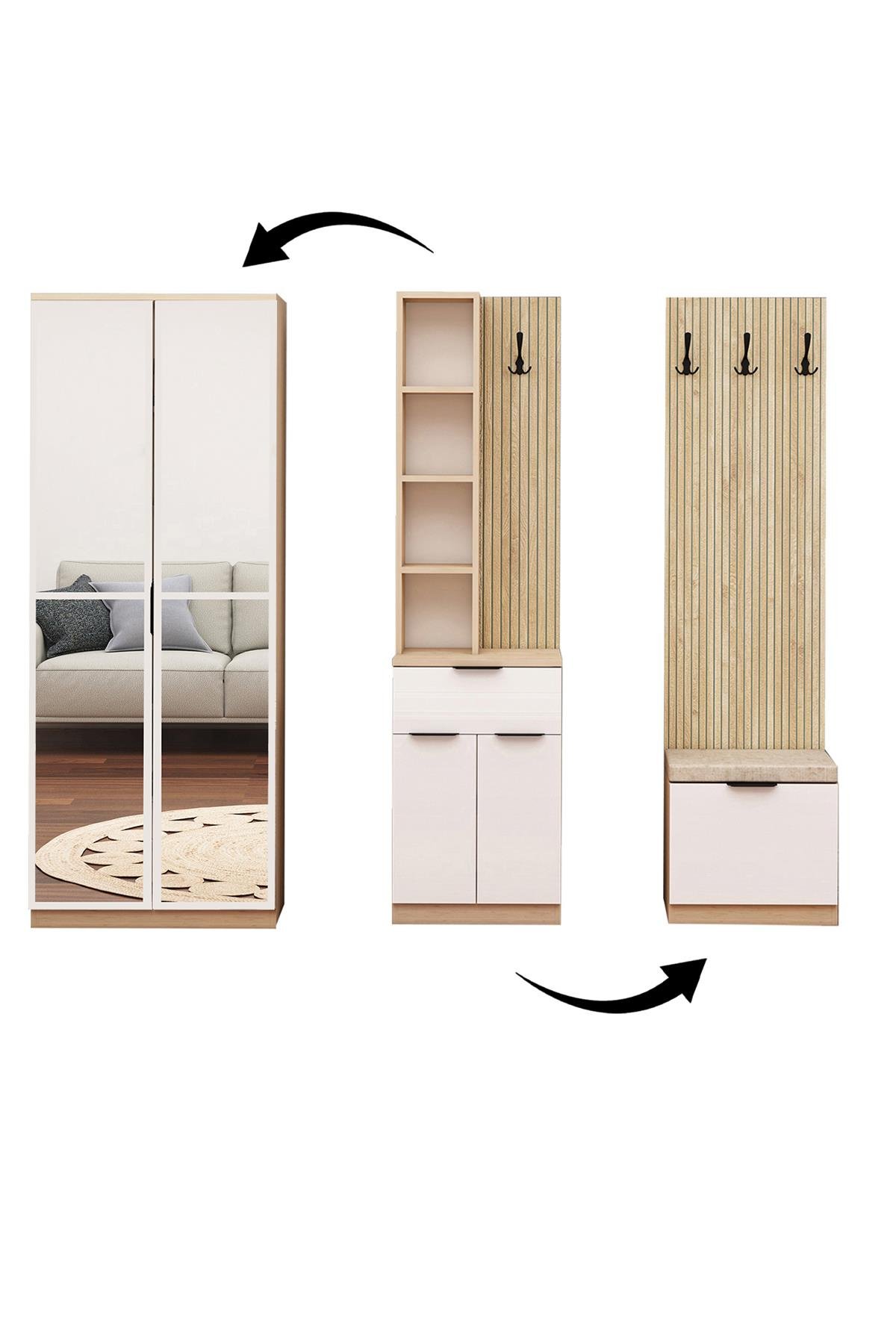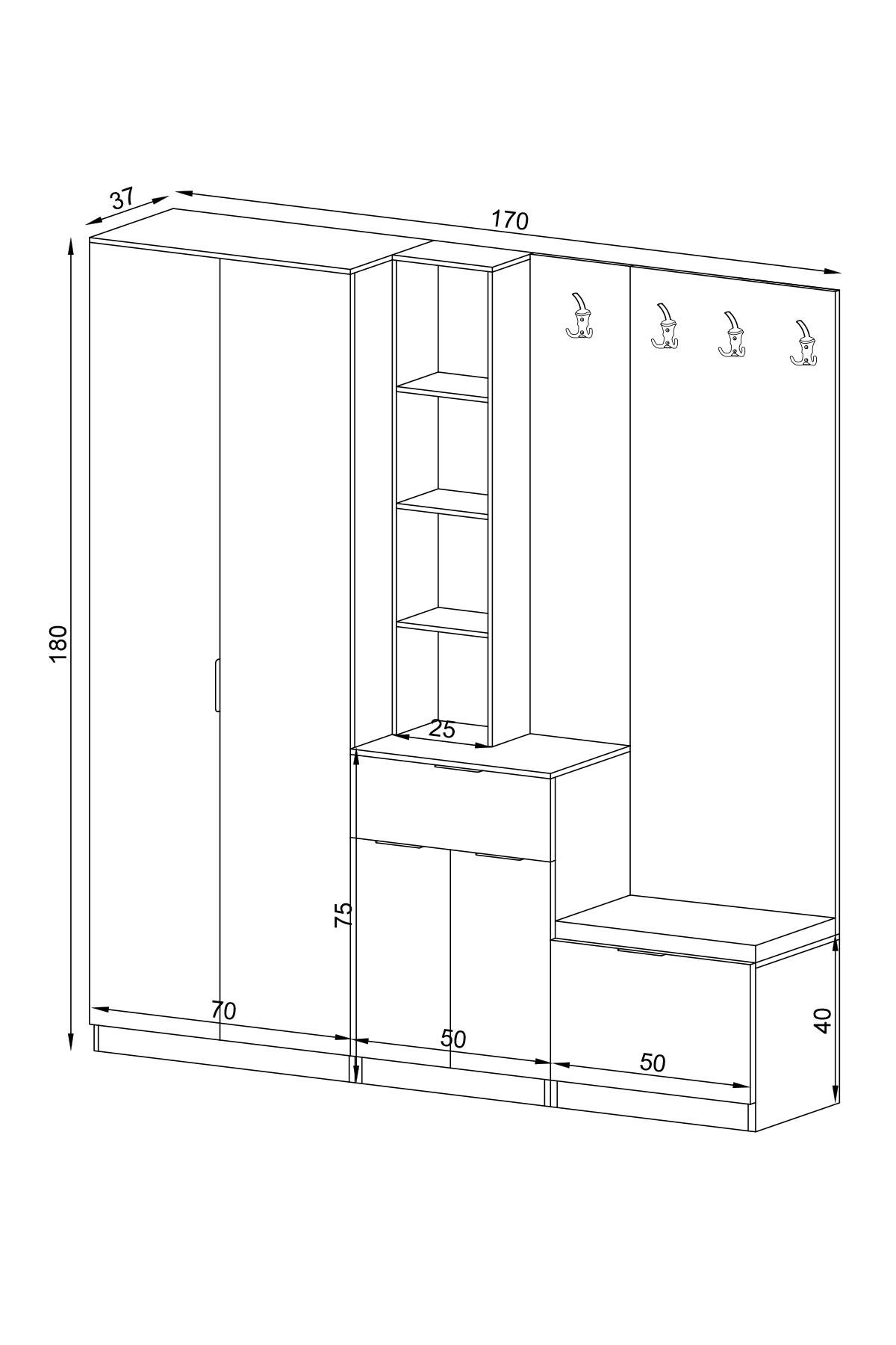 Genişlik: 170 cm – Derinlik: 35 cm – Yükseklik: 180 cm