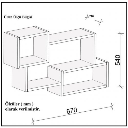 Genişlik: 97 cm – Derinlik: 22 cm – Yükseklik: 75 cm